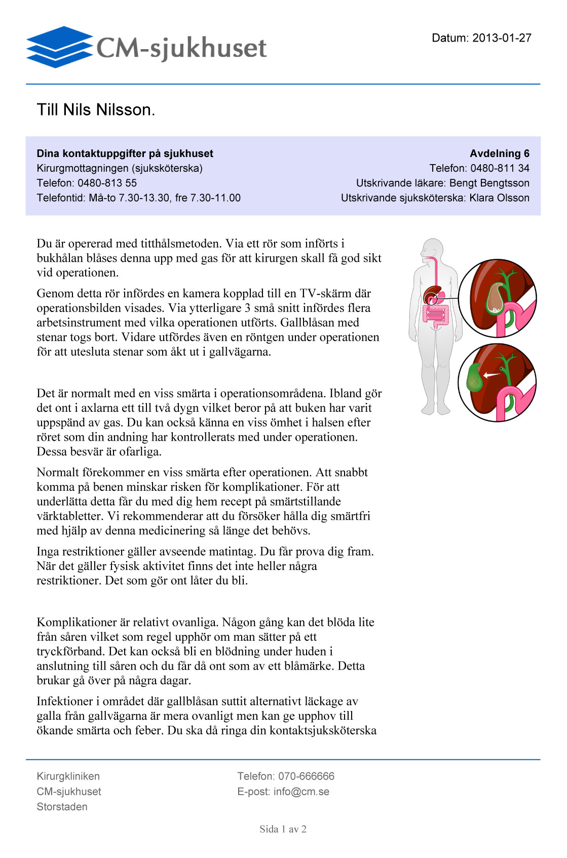 Patientinformationen ges med det aktuella sjukhuset som tydlig avsändare i form av logotyp, färger, kontaktinformation etc.