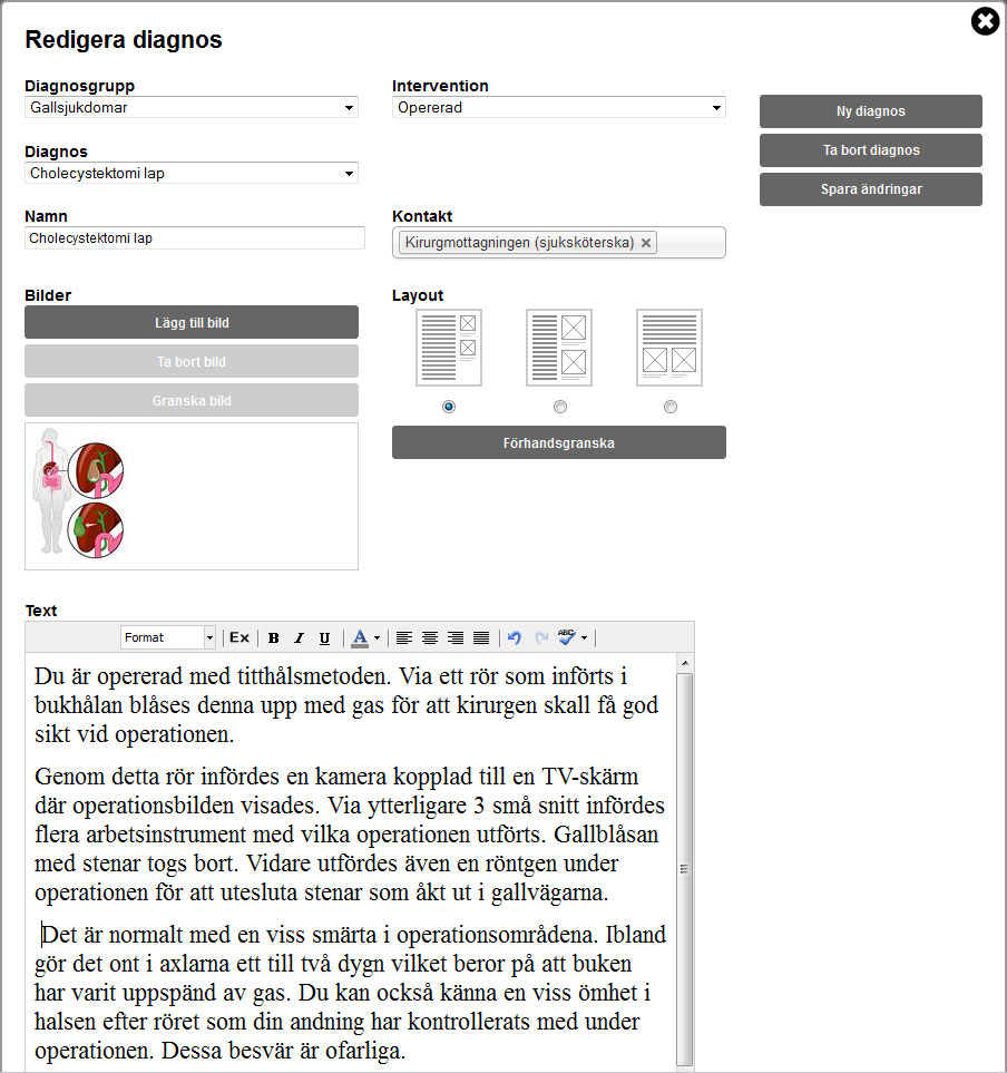 Patientbesked kan användas för att ge patientinformation efter slutenvård eller polikliniska operationer, men också för att ge mottagningsinformation eller personliga behandlingsplaner vid maligna tillstånd.